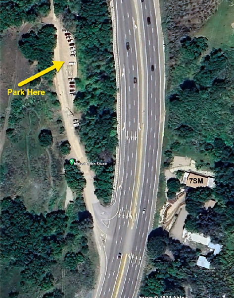 The picture on the bottom shows the trailhead parking for Old Stage Coach Road at the bottom of Cuesta Grade. There is a sign pointing to Old State Coach Road on Hwy 101. You can exit going either North or South. Note that it is across the freeway from a building labeled 7SM. Be careful when crossing Hwy 101 because there are a few drivers left (like Russ) with manual transmission cars which simply put them in neutral for going down Cuesta Grade reduce engine wear.